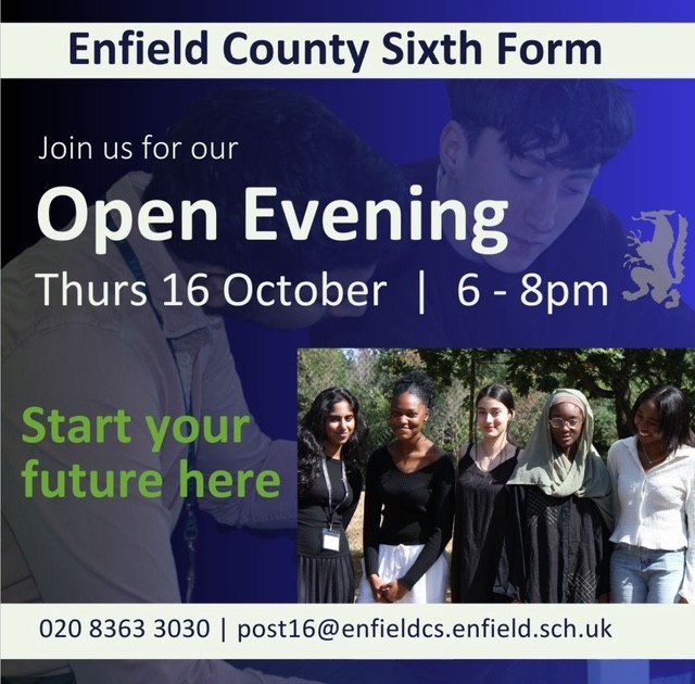 This is your chance to shape your future and discover why Enfield County Sixth Form is the right choice for you.
